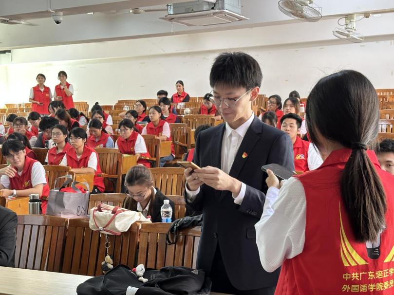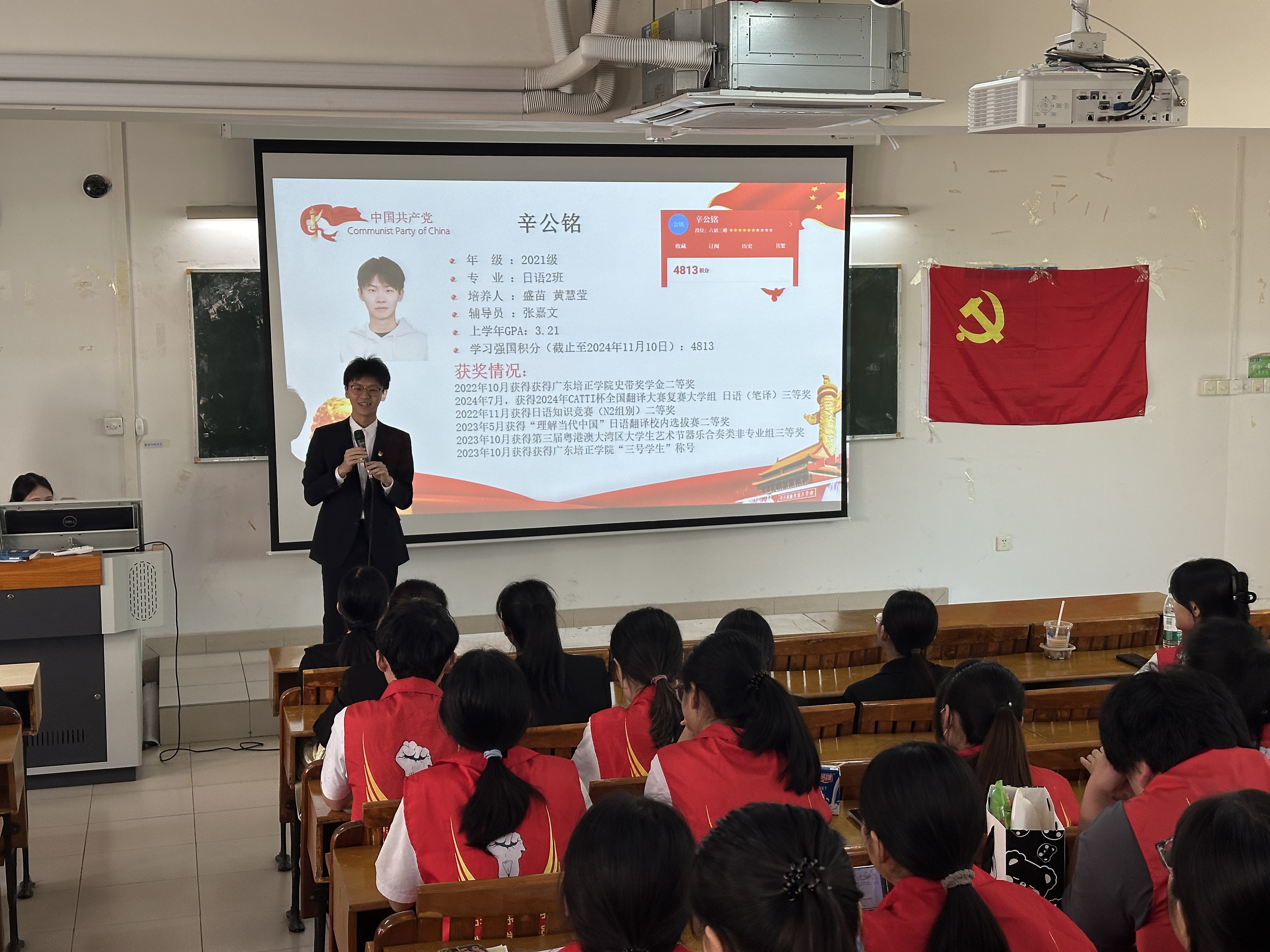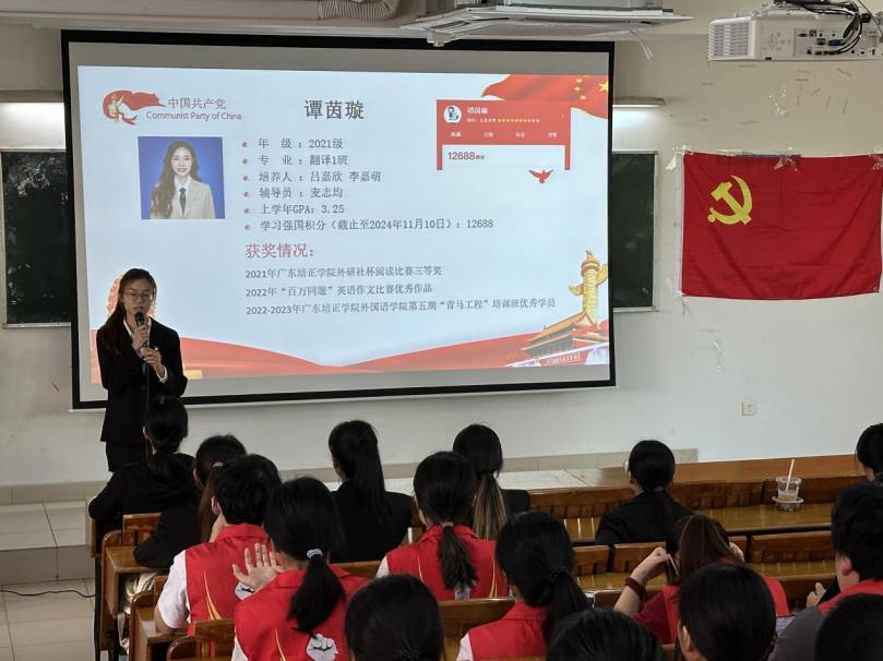 本网讯(外国语学院 吴泳妍)为了进一步增强党组织的凝聚力和战斗力,壮大、优化党员队伍,增强党员对党组织的归属感和参与感。广东培正学院外国语学院学生第二党支部于2024年11月17号在第二教学楼411教室顺利举办了本学期的预备党员转正大会,讨论并表决预备党员的转正申请。出席本次会议的有外国语学院学生第二党支部书记吕嘉欣和支部的全体同志。