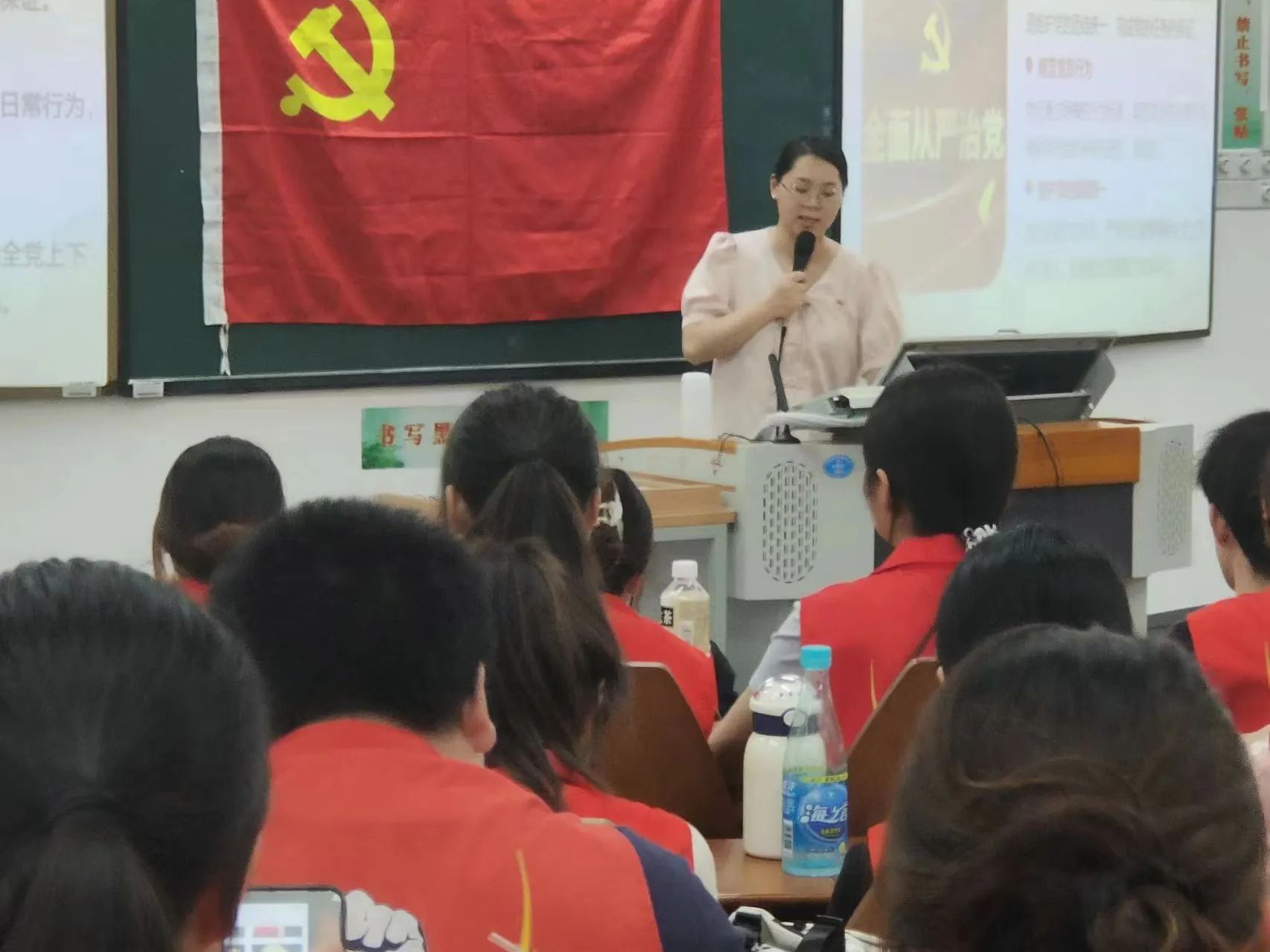 本次专题党课由盛苗书记带领学习,书记就《中国共产党纪律处分条例》为主,具体以党纪重要性与意义、基本内容和执行要求三个方面展开。