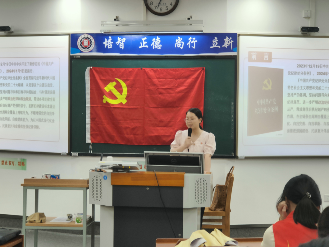 最后,盛苗书记向党员同志明晰贯彻执行新修订《中国共产党纪律处分条例》的要求。党纪学习教育作为每一位党员的必修课程,每位同志都应在日常生活中加强党纪教育,努力营造学纪,知纪,明纪,守纪的一个浓厚氛围;将党的纪律规定内化于心、外化于行,自觉做到言行一致、表里如一;按时进行自我革命与自我反省。坚强理想信念,坚守初心,慎独慎微,自觉接受党和人民的监督。