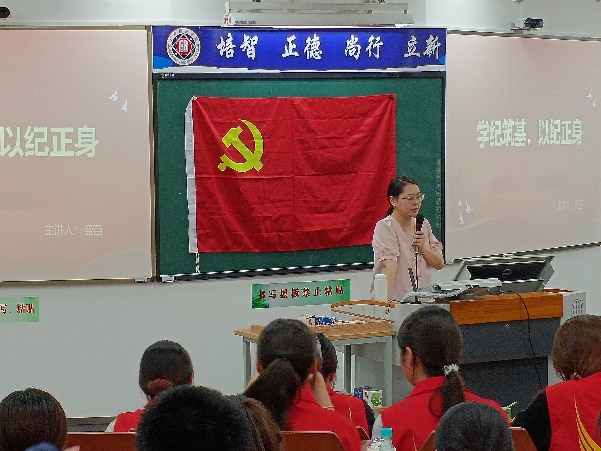 本网讯(外国语学院 陆思琪)为深入贯彻习近平总书记关于开展党纪学习教育的重要讲话和重要指示精神,进一步强化纪律意识、加强自我约束,外国语学院学生第二党支部于2024年6月12日12:30在第五教学楼308教室开展以“学纪筑基,以纪正身”为主题的专题党课学习。本次党课旨在通过深入学习党的纪律规定,引导广大党员筑牢思想防线,将纪律学习融入日常工作,做到学纪、知纪、明纪、守纪。参与本次党课的有外国语学院学生第二党支部书记盛苗老师和二支部全体同志。