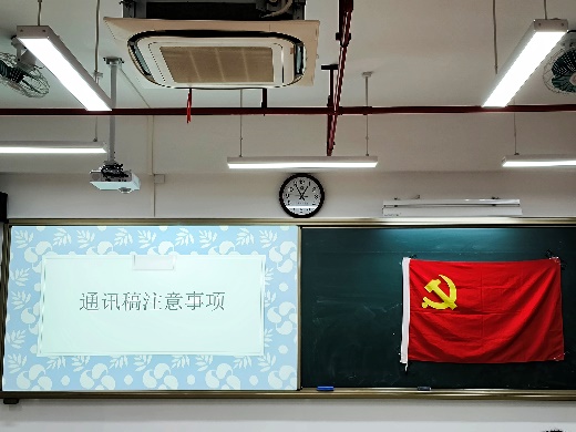 李妍同志首先对支部推文通讯稿的撰写要求做了详细地介绍。在撰稿时,忌讳内容重复啰嗦,或是过于简单、口语化,没有重点,要注重格式、标点符号、错别字出错等问题。李妍同志还强调了通讯稿讲究文字功底与主题升华,通讯稿中的素材就是吸引读者的关键之一,推文通讯稿也是学校同学了解支部活动的途径,强调推文通讯稿撰写的重要性。