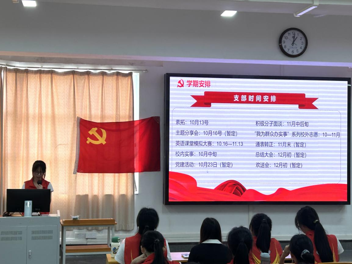 徐真真同志从本学期安排、发展对象考核、举报成员不良作风措施改革以及支部积分制四个方面展开了详细说明。随后,徐真真同志向支部同志具体地说明了举报措施的改革、发展对象考核和支部积分制细则,并强调支部同志举报时要对象明确,内容真实,同时同志自身要严守底线、不忘初心,积极参与支部活动。