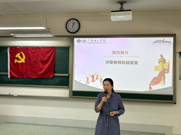 接下来是评委老师点评环节 。通过老师的点评,选手们获得肯定的同时也获得了相应的反馈,从仪容仪表和演讲内容分点细致点评,评委老师针对性提出个性化建议,选手们才能知不足,而改进。
