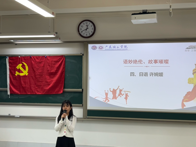 活动伊始,主持人庄苑莎同志介绍出席本场活动的嘉宾。他们分别是英语评委周凯妍老师,西语评委杨媛老师,以及日语评委胡靖老师。