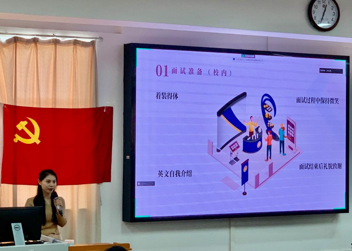 何丽仙同志从面试准备、开馆前期安排、馆中工作注意事项和闭馆后期总结四个方面向大家分享了她在广交会实习中的经验和建议。在面试准备方面,她建议大家在面试时需要着装得体,自信大方,并提前准备英文自我介绍。在开馆前期安排上,她提醒同学们保管好相关证件以及要注意与招聘公司积极联系与沟通。此外,她还特别提醒大家要合理安排住宿地点以确保能够准时到达展馆。在馆中工作注意中,她表示希望大家认真完成本职工作,主动积极地与客户沟通并解决问题。在接待外国友人时,同学们要热情大方,尊重不同国家的文化。在闭馆后期总结方面,她鼓励同学们将实习收获到的工作经验运用到平时的学习中,这不仅能够巩固实习期间所获得的经验,还能提升自己的专业能力。
