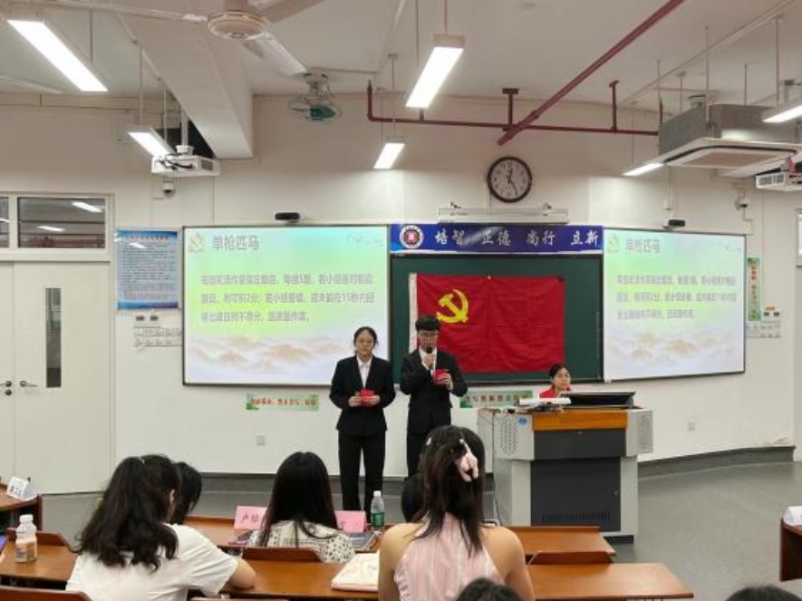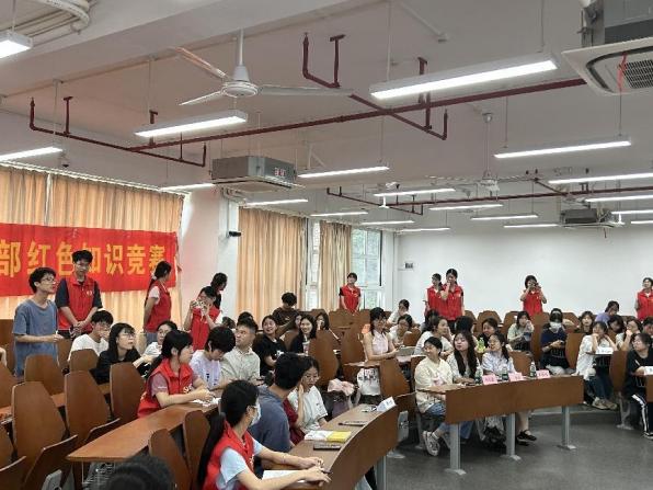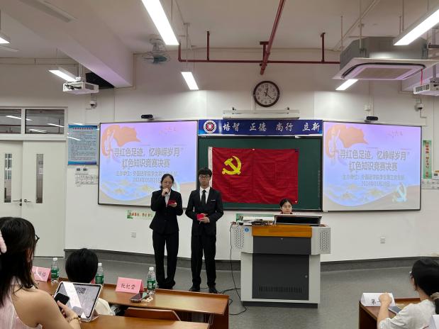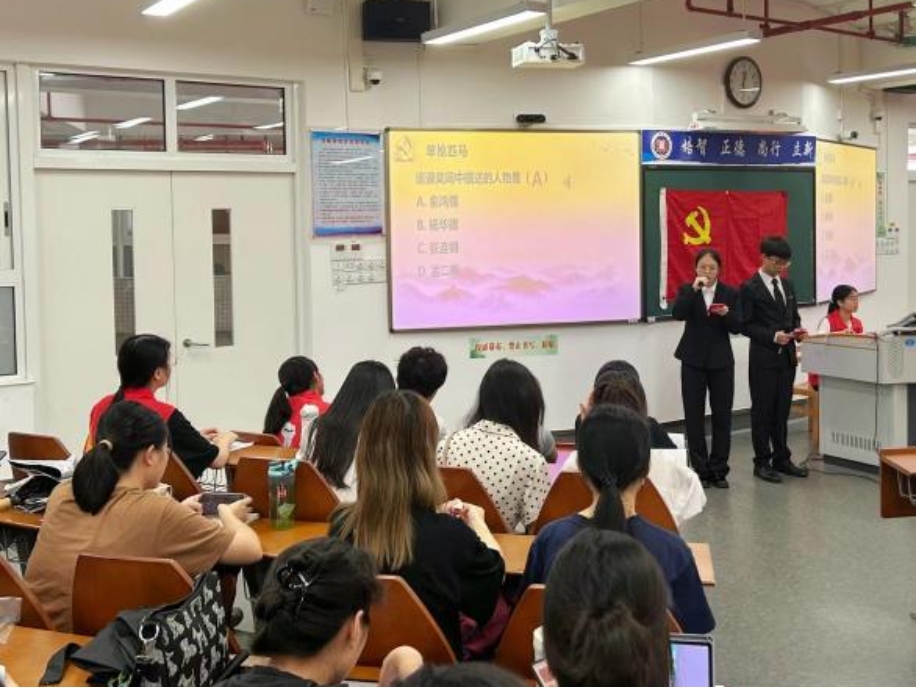 本网讯(外国语学院 利心愉)红色知识不仅蕴含着丰富的革命精神和道德品质,同时体现了中华民族的优秀传统和民族精神。为提高大学生的思想政治素养,引导同学们知史爱党、知史爱国,增强历史使命感和社会责任感,广东培正学院外国语学院学生第三党支部于2024年05月28日12:20在第五教学楼308课室举行“寻红色足迹,忆峥嵘岁月”红色知识竞赛决赛。出席本次比赛的嘉宾有:外国语学院学生第三党支部书记李雪老师、卢雅怡师姐和阮杞莹师姐。