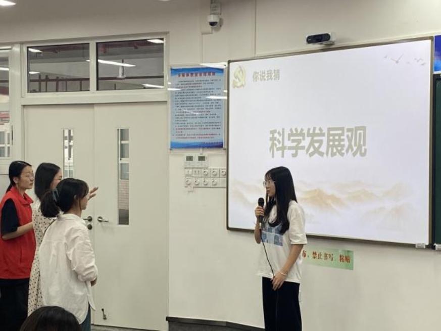 接着,进行第二环节:“快问快答”。本环节为每组轮流作答指定题目,每组5题,每题只有一次答题机会,主持人迅速说出题目后不再重复,选手需要认真听题,并在15秒内说出答案。若回答正确,可积5分;若小组答错,或未能在15秒内回答出题目则不得分。主持人介绍完规则后,第二轮比赛正式开始。在这场激烈的较量中,有的选手表现出色,回答问题时思维敏捷、条理清晰,赢得了观众的阵阵掌声。而有的选手则在关键时刻略显紧张,错失了回答问题的机会,但他们并未因此气馁,而是迅速调整状态,准备迎接下一个挑战。每个队伍都竭尽所能,为获得最后的胜利而不遗余力,观众的热情也被点燃了。