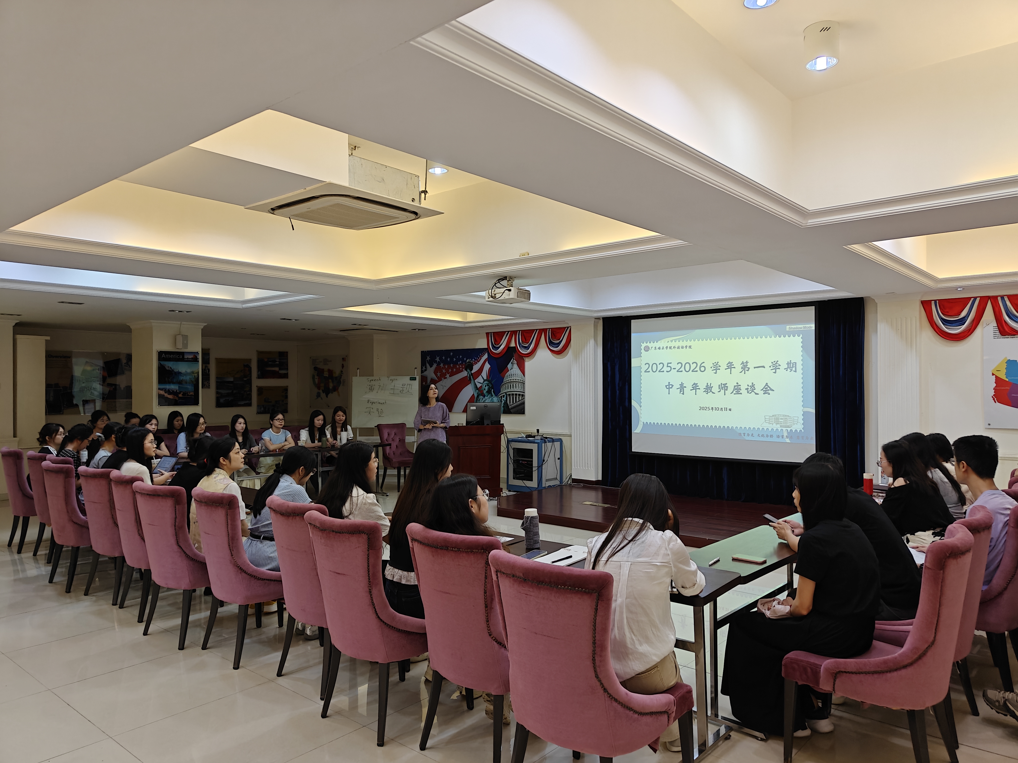 本网讯 (外国语学院 王凯)2025年10月11日下午,我院2025-2026学年第一学期中青年教师座谈会,在第二教学楼北美文化园顺利召开。此次会议由张妤副院长主持,各系部老师做了发言。