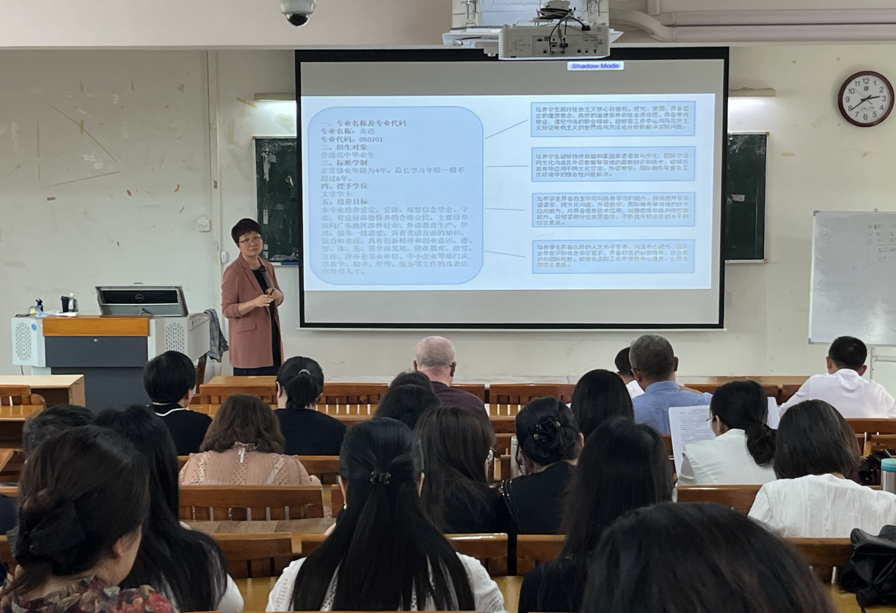 主讲人李娜老师在介绍英语专业培养方案