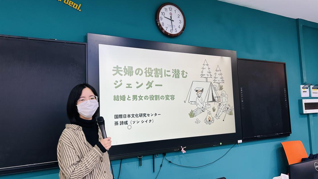 2025年2月26日上午,日语系举办的“隐藏在夫妻角色中的性别”学术讲座在3705顺利举行。本次讲座主讲嘉宾是孙诗彧博士,日语系师生参与了本次讲座。讲座伊始,日语系文秀秀老师致欢迎辞,对孙诗彧博士的到来表示热烈欢迎,并简要介绍了其在男女性别研究和主妇论争的卓越成就。