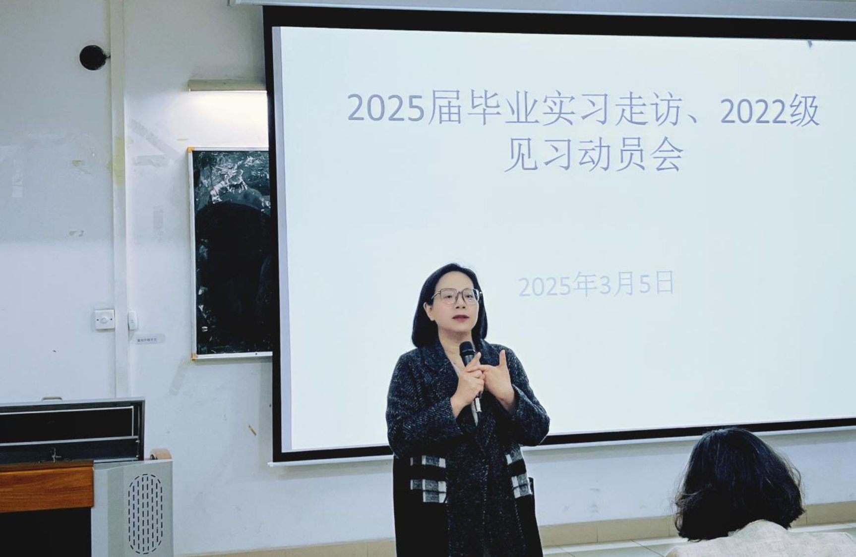 实践教学部主任王琰老师详细介绍了本次实习走访的安排与预期目标,以及 2022 级见习活动的具体内容与要求。