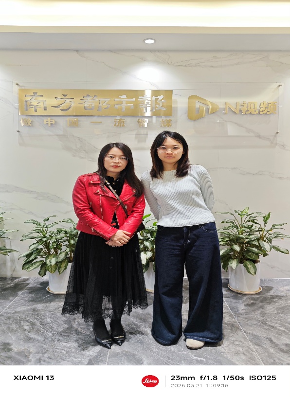 转赴东莞后,我首先探访南方都市报东莞新闻部。刘思懿同学在指导记者带领下,表示:“新闻工作让我学会用英语思维捕捉社会热点,更深刻理解了跨文化传播的价值”。在东莞伟灏鑫电子有限公司,何杰敏同学作为外贸专员助理,全程参与广交会客户对接、合同翻译及跨境物流协调工作。