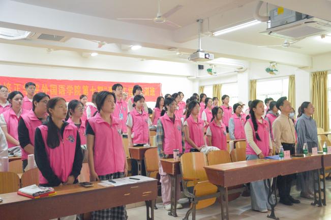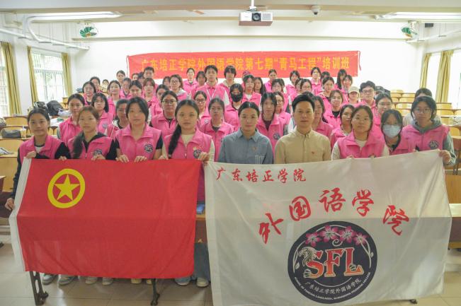 本网讯 (外国语学院 夏许恩【学生】)广东培正学院外国语学院第七期青马工程培训班结课仪式于2025年11月6日在2107顺利举行。出席本次会议的嘉宾有:外国语学院党委书记陈橹老师;外国语学院团委书记兼学生会指导老师章小慧老师;第十三届外国语学院团委学生会书记主席团助理庞蓓蔚师姐。