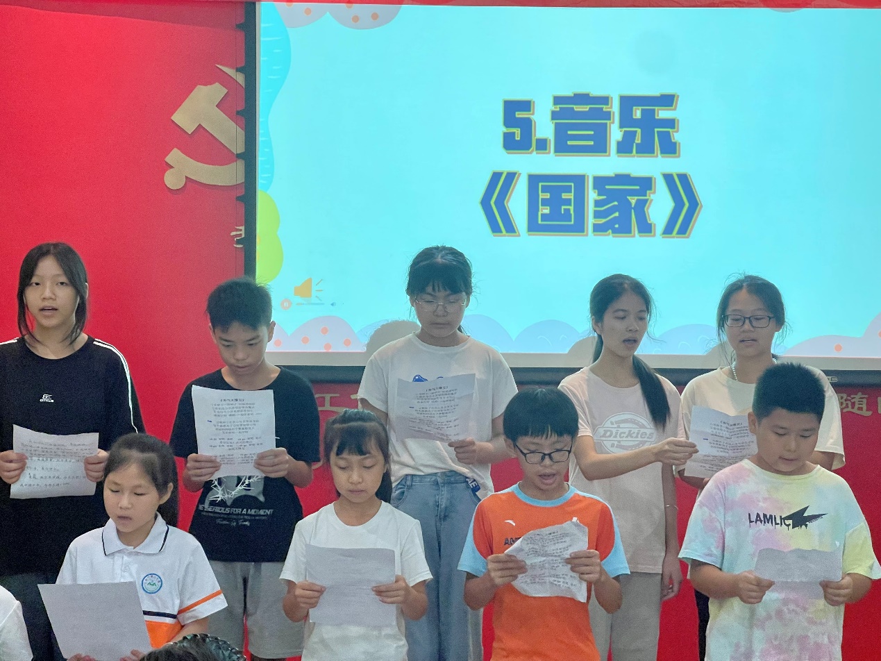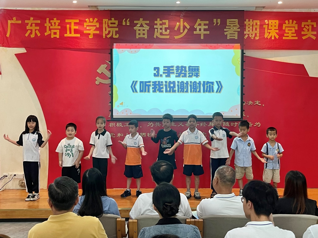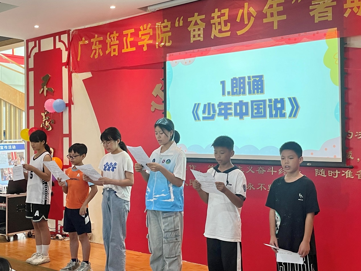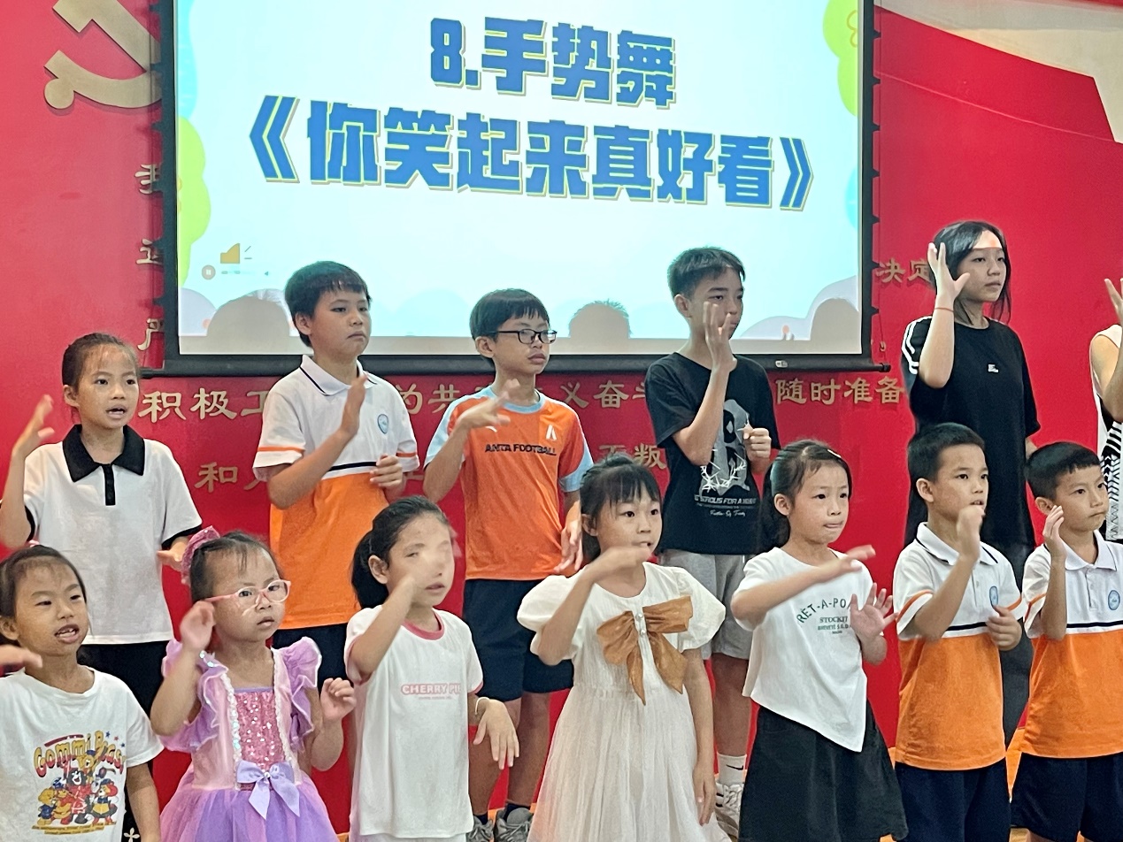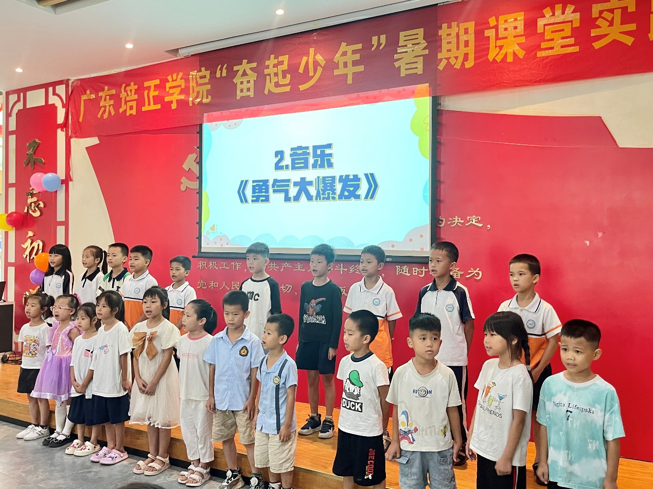 青春风华正茂,稚气别有风格。07月24日,在“奋起少年”们的共同努力下,文艺汇演如期举行并圆满结束。出席文艺汇演的嘉宾有新江村党支部书记兼村委会主任黄邵源同志、长宁镇妇联代表叶秀婷同志、长宁镇团委代表林博兴同志、新江村妇联主任张巧玲同志等当地领导,以及“奋起少年”百千万工程突击队指导老师黄斯旋同志与朱丽婷同志。主持人赵晓旭同志和刘璇同志介绍了本次文艺汇演的流程:播放宣传视频、正式表演、颁奖仪式以及指导老师黄斯旋同志发言。