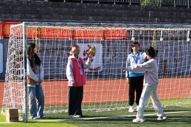 值此建国75周年之际,本项目特别设置了红色重现环节,将体育活动与爱国主义教育融合。抛绣球这一传统民俗文化元素的加入,既增添了项目的趣味性,也承载着民俗文化的传承意义。而红色重现环节要求参赛队员依据给出的emoji表情猜出相应的历史事件,这具有深远的教育价值,帮助同学们深化历史认知,传承红色基因,弘扬红色文化。