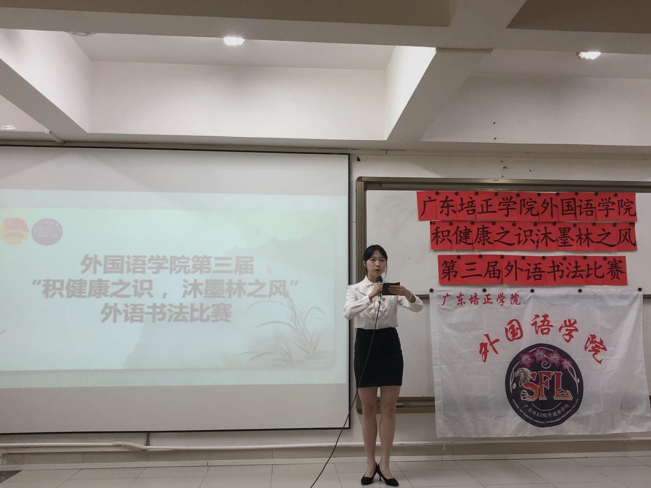 本网讯(外国语学院 刘璇)为普及健康知识,营造浓厚的校园文化氛围,由共青团广东培正学院外国语学院委员会主办,广东培正学院外国语学院学生会承办的广东培正学院外国语学院第三届“积健康之识,沐墨林之风”外语书法比赛于2024年3月20日在四教215课室顺利举行。担任本次比赛的评委老师有周凯妍老师、亢俊洁老师。