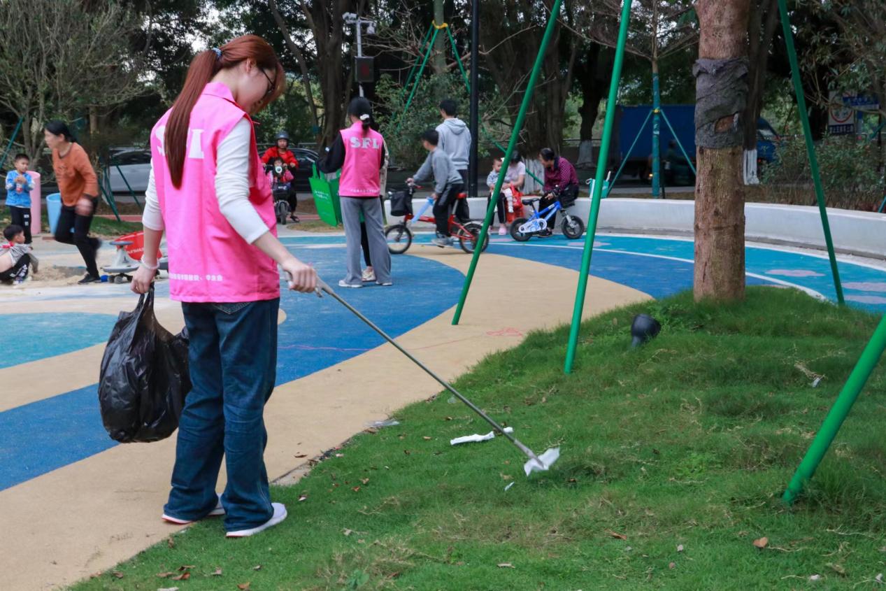 在活动的最后,我们还进行了环保宣传和清捡垃圾的活动,志愿者们清理了康乐广场和附近的垃圾,将垃圾进行合理的分类,美化广场内的环境。志愿者们改善了广场内的环境,以身作则地展现“绿美广东”的理念,凝聚志愿力量,弘扬雷锋精神,展现了积极向上的青年风貌。此外,志愿者对周围居民进行垃圾分类知识宣传,让居民意识到垃圾分类的重要性,引导居民养成垃圾分类的好习惯,共同打造环境良好的社区。