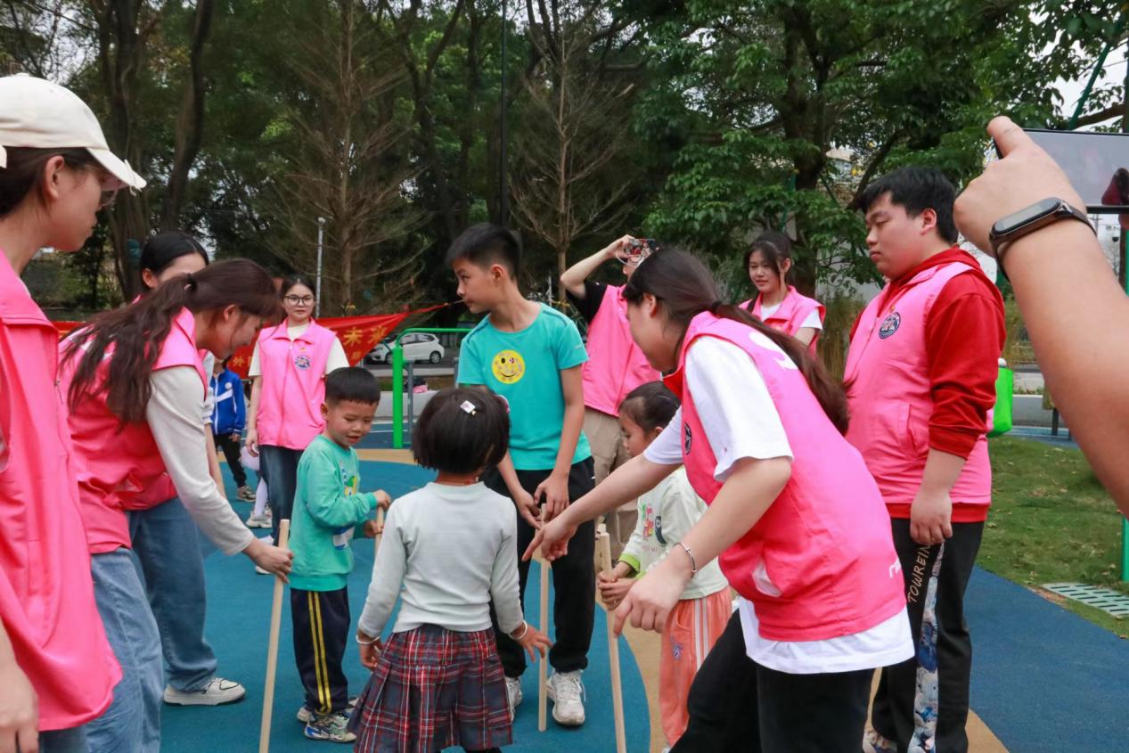 接着我们进行了《专心致志,匠心护绿》的团体合作游戏。把木棒比作“树苗”,小朋友们需要使其竖立,并集体以顺时针方向移动,做到人动“树苗”不倒。这考验小朋友们的反应能力和团体协作能力。小朋友们与志愿者们一起“专心致志,匠心护绿”,齐心协力让“树苗”竖立不倒。小朋友们在享受游戏的乐趣同时,也认识到保护森林的重要性。