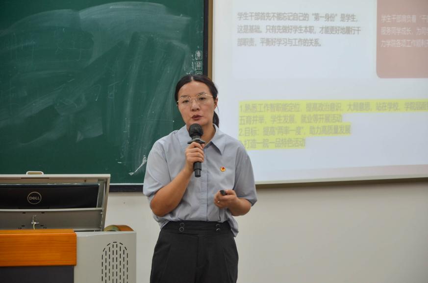 同时,小慧老师还从宏观层面为干部们明确工作方向:要熟悉工作职能定位,提升政治意识与大局观念,站在学校、学院层面策划活动,以“提高两率一度,助力高质量发展”为目标,打造“一院一品”的特色活动,让学生工作更具影响力与辨识度。