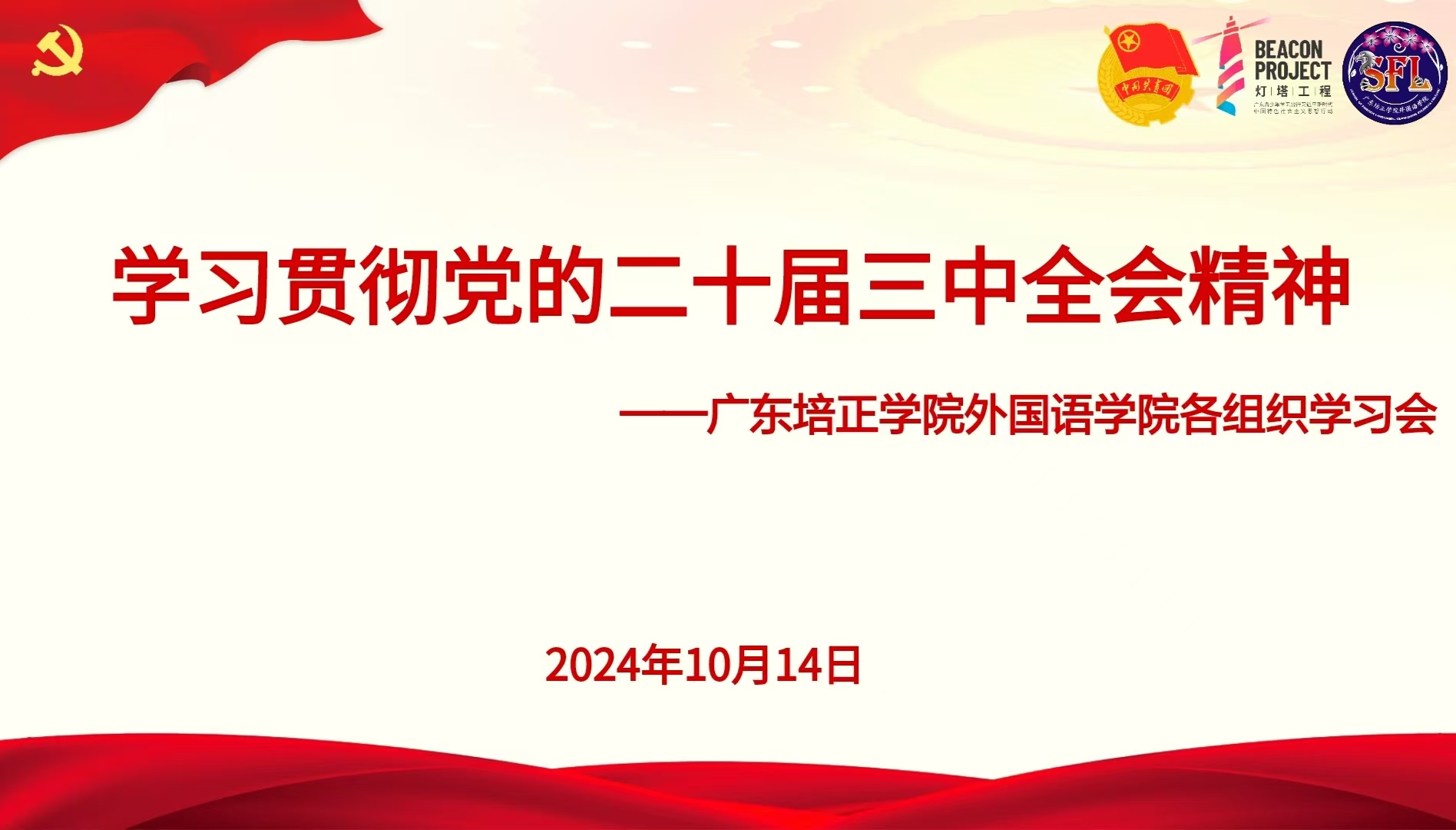 本网讯(外国语学院 卢康庭)为深入学习贯彻党的二十届三中全会精神,牢牢把握建设中国特色社会主义教育强国的总要求,引导青年学生坚定理想信念,增强责任感和使命感,推动全会精神在学生群体中落地生根。2024年10月14日中午12点,外国语学院在第五教学楼308课室组织团委、学生会、二级心理辅导站及党委的干部进行专题学习,会议由外国语学院书记主席团助理杨嫦菁师姐主持。