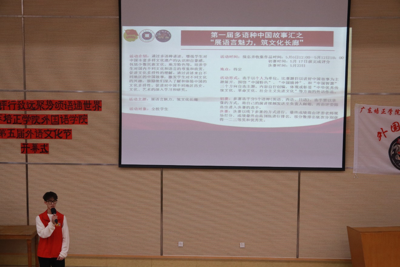 本网讯(外国语学院 尧旋)2024年3月22日,广东培正学院外国语学院第五届外语文化节开幕式于12:30在学术报告厅揭开了帷幕。