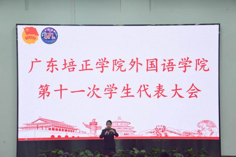 本网讯(外国语学院 庞蓓蔚【学生】)为发挥学生在校园建设中的引领作用,强化学生组织管理效能,畅通意见反馈渠道,2025年11月11日12:15,广东培正学院外国语学院第十一次学生代表大会在第五教学楼108报告厅顺利召开。